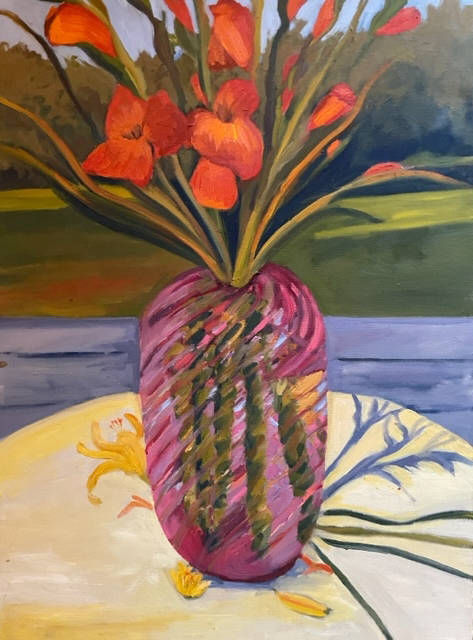 Gladiolas on deck 36x36